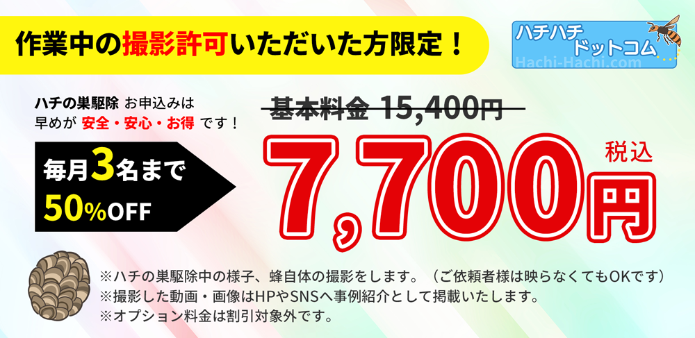 種別や作業場所によっては、作業員も命がかかっていますので、このあたりの広告は大体が、1匹の駆除の場合といった例に過ぎません。